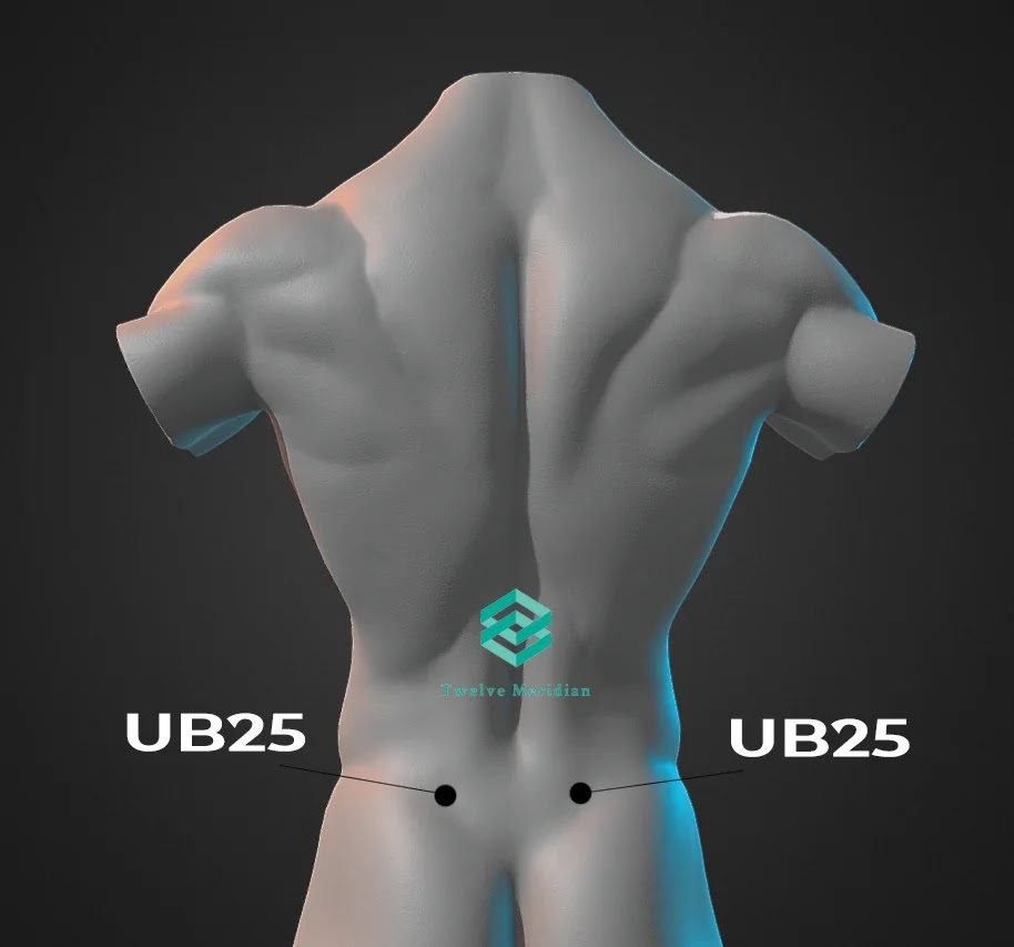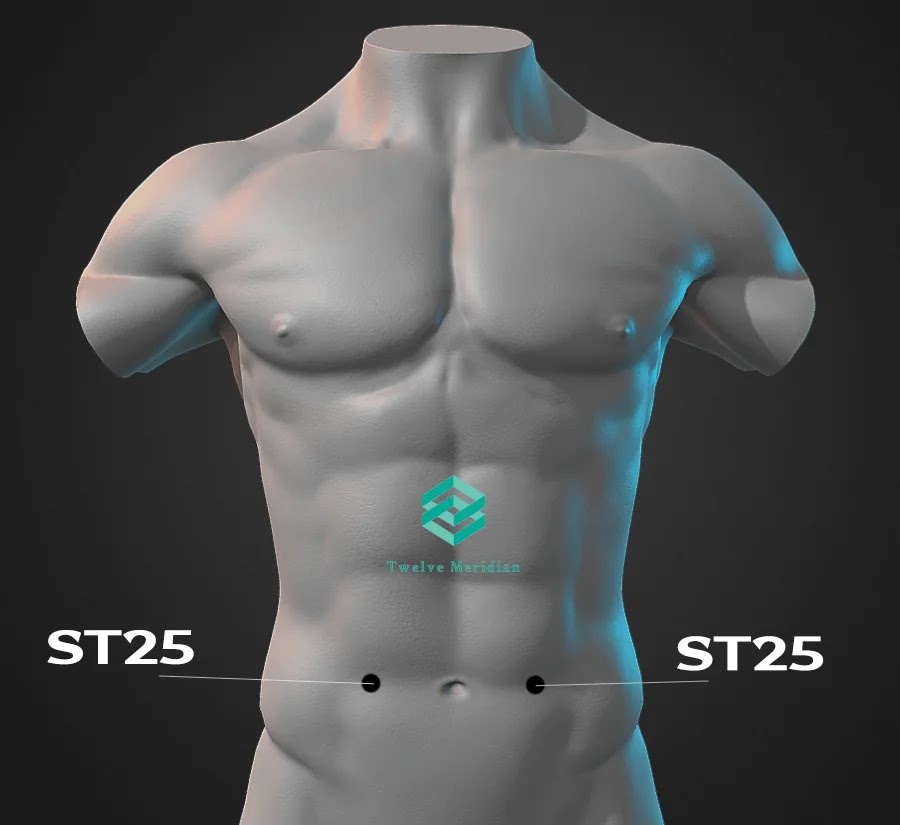 St 25 means Stomach 25. This point is also known as Tian Shu.